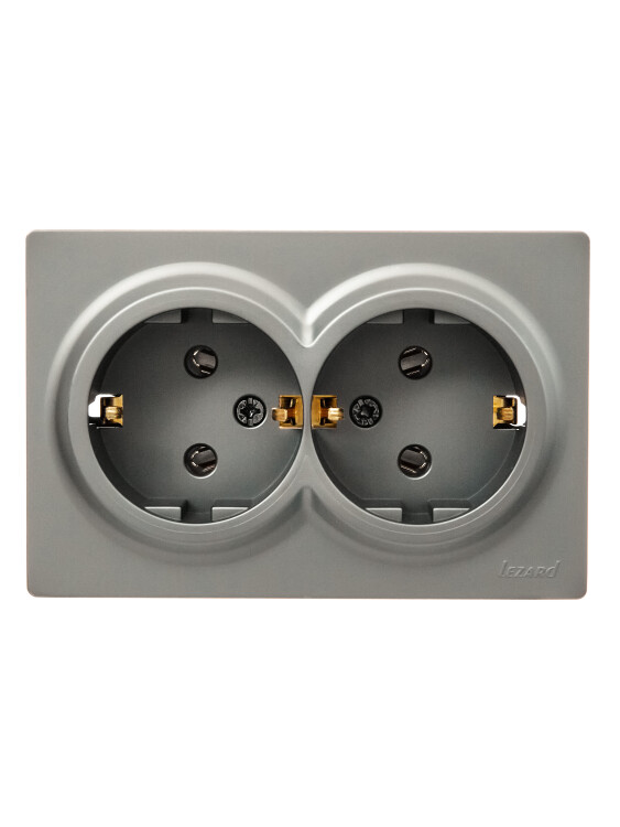 LETO Розетка двойная с/з закрытый корпус ПБТ платина (10шт/120шт)
