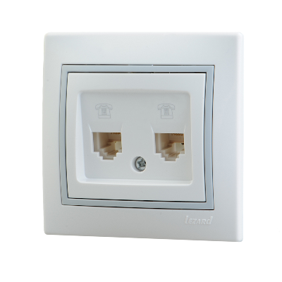 Lezard Мира белый с сер.вст. Розетка телефонная 2-ая евро 1/10/120