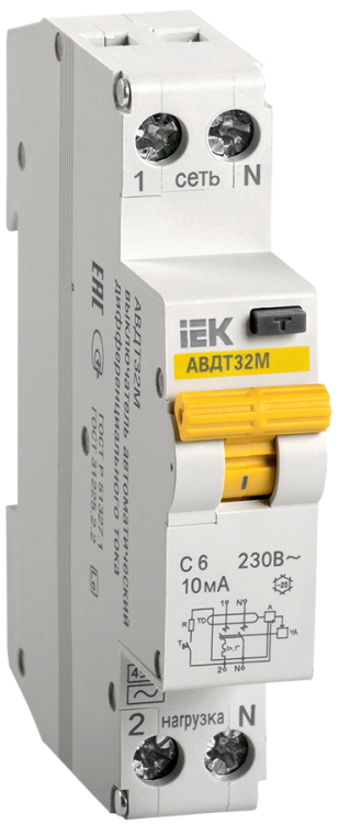 Автоматические выключатели дифференциального тока АВДТ32М для однофазных сетей в одномодульном исполнении (18мм) предназначены для защиты человека от поражения электрическим током при повреждении изоляции электроустановок, а также для защиты от перегрузки и короткого замыкания в сетях переменного тока напряжением 230 В и частотой 50 Гц и по своим характеристикам соответствуют ГОСТ Р 51327.2.2 и ГОСТ Р 31225.2.2.