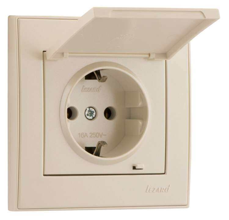 Lezard RAIN Розетка с/з с крышкой керамика жемчужно-белый перламутр 1/10/120