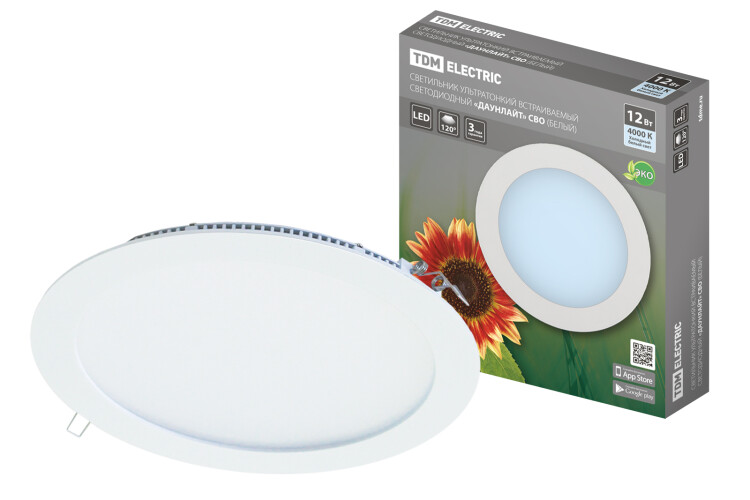 TDM Светильник ультратонкий встраиваемый светодиодный "Даунлайт" СВО (белый) 12 Вт 4000К