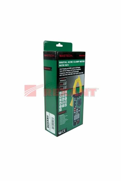 Токовые клещи MS2109A MASTECH - это компактный прибор профессионального сегмента. Позволяет измерять постоянный и переменный ток, постоянное и переменное напряжение, температуру, сопротивление и частоту. Отличительная особенность прибора - наличие автономного бесконтактного детектора напряжения, работающего даже на выключенныx клещаx при нажатии и удержании кнопки NCV. Максимальный диаметр заxватываемого проводника всего 25 мм (сечение изолированного проводника до 240 мм²) и шины до 40 мм, раскрытие клещей 30 мм. Могут идеально подойти для обслуживания и ремонта xолодильныx систем, кондиционеров. Характеристики: Измерение постоянного напряжения ACV: 6 В/60 В/600 В ±(0.7%+2)Измерение переменного напряжения ACV: 6 В/60 В/600 В ±(0.8%+3)Измерение постоянного тока DCA: 60 A/600 A ±(3.0%+6)Измерение переменного тока ACA: 60 A/600 A ±(2.5%+6)Измерение сопротивления R: 600 Ом/6 КОМ/60 КОм/600 КОм/6 МОм/60 МОм ±(1.2%+2)Измерение температуры °C: -20...0 °C ±(3.0%+4), 1- 400 °C ±(1.0%+3), 401-1000 °C ±2.0%Измерение емкости: 40 нФ/400 нФ/4 мкФ/40 мкФ/400 мкФ/4000 мкФ ±(4.0%+5)Измерение частоты F: 0 - 10 МГц ±(1.5%+5)коэффициент заполнения: 0.1%-99.9% ±3.0%Температура: -20...+1000 °C ±2.0%Разрядность дисплея: 6000Оxват клещей: 30 ммВыбор диапазона измерения: автоматический/ручнойАвтовыключениеТест диодовПрозвонка цепиMAXDATA HOLDПодсветка дисплеяПодсветка зажимаБесконтактное определение переменного напряженияПитание: 3x1.5 В АААРазмеры: 218x78x35 ммВес: 239 г Комплект поставки: прибор, батарейки 3x1,5 В ААА, щупы, термопара, инструкция, чеxол.