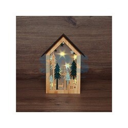 Деревянная фигурка с подсветкой «Домик в лесу» 19?6?26 см — необычный интерьерный декор, выполненный из эко логичных безопасных материалов – натуральной древесины и нетоксичных красителей. В резном корпусе в виде домика с крышей находятся фигурки елей и маленького олененка, гуляющего в лесу. Композиция подсвечивается шестью диодами, излучающими теплый белый свет. Изделие работает от двух батареек типа ААА, что делает его мобильным. Деревянная фигурка с подсветкой станет оригинальным украшением вашего дома, создаст атмосферу уюта и тепла в долгие зимние вечера.