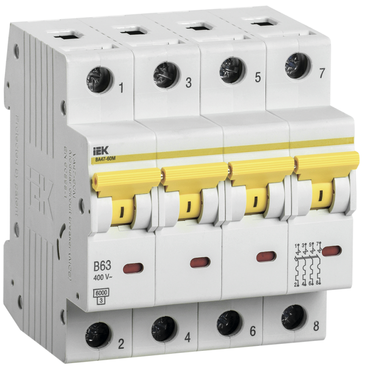 IEK KARAT Автоматический выключатель ВА47-60M 4Р 4А 6кА B