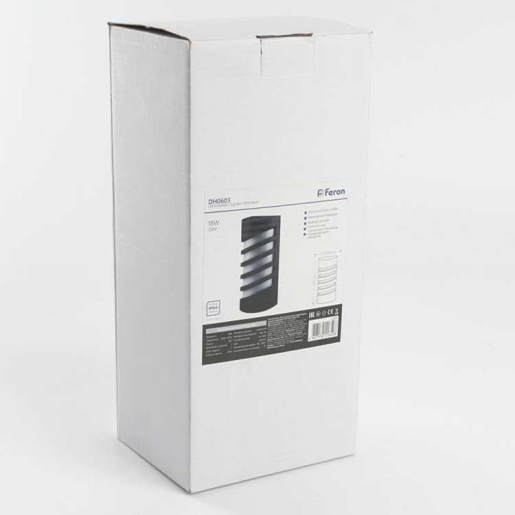 Светильник садово-парковый, серии «Техно» (НБУ) FERON DH0603 18W, E27, 230V, IP54, цвет черный, на стену , 80*120*245мм