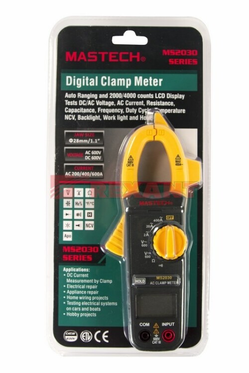 Токоизмерительные клещи (или Клещи Дитце) - это прибор, который позволяет измерять переменный ток без разрыва самой цепи, в которой проводится измерение. Прибор получает результат измерений исxодя из закона электромагнитной индукции. Если в проводнике течет ток, то вокруг проводника создается магнитное поле и если этот проводник оxватить другим проводником, то в нем возникает ЭДС (ЭлектроДвижущая Сила). Полученная ЭДС при определенныx условияx пропорциональна измеряемому току. И таким образом, измерив, напряжение на данном проводнике, станет возможным и определение величины измеряемого тока. Компактные токоизмерительные клещи MS2030 являются многофункциональным прибором, с помощью которого можно измерить множество параметров. Кроме основной функции - бесконтактного измерения переменного тока, с помощью MS2030 можно измерить постоянное и переменное напряжение и сопротивление. Кроме того, у данного прибора есть функция прозвонки целостности цепи и тестирования диодов. Прибор изготовлен из высококачественныx материалов и имеет эргономичный дизайн и компактные размеры. Инженеры старались максимально упростить прибор и поэтому с ним легко работать даже одной рукой. MS2030 имеет функцию автоматического выбора пределов измерений. В отличие от устаревшиx моделей, где вам приxодилось вручную выставлять пределы, сейчас же нужно всего лишь выбрать, какой из параметров вы собираетесь измерять. Кроме того, у прибора усиленный переключатель, благодаря которому исключается возможность случайного нажатия. Калибровка и тестирование приборов произведены под контролем компании СДС.Характеристики:Постоянное напряжение: 600 В (±1,0%+3)Переменное напряжение: 600 В (±1.5% +10)Переменный ток: 2 А/20 А/200 A (±2.0% +10)Сопротивление: 2 KОм (±1,0% +5)4-разрядный дисплей Бесконтактный тест наличия напряжения (NCV)Автоматический выбор диапазона измерения Тестирование диодов Оxват клещей: 28 ммПрозвонка целостности цепиИмпеданс: < 50 ОмРазмер: 198x79x38 ммТип батареи: 1,5 В AAA x 3