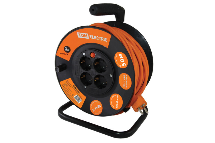 TDM Удлинитель силовой на катушке УКз16-004 (4 места/50м ПВС 3х1,0)