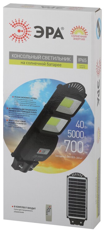 ЭРА Консольный светильник на солн. бат.,SMD, 40W, с датч. движ., ПДУ, 700lm, 5000К, IP65 (6/126)