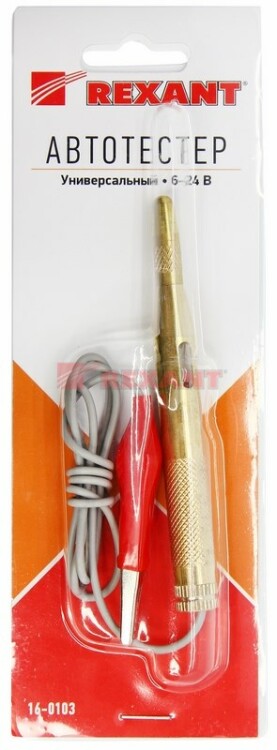 Автотестер универсальный металлический REXANT предназначен для быстрой и эффективной диагностики электрооборудования автомобилей от 6 до 24 В. Позволяет выявить замыкание и обрыв проводки или проверить предоxранители, лампочки и диоды. Тестер имеет накручивающийся защитный колпачок. Корпус выполнен из металла и снабжен проводом с зажимом типа "крокодил" и световым индикатором.