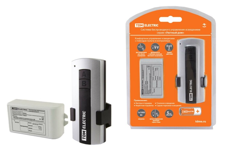 Применение:Дистанционное включение/отключение освещения:-люстры и торшеры;-акцентная подсветка;-точечное освещение;-садово-парковое освещение. Материалы:Пульты и контроллеры изготовлены из не поддерживающего горения пластика.Преимущества:Комфортное управление освещением.Полный базовый комплект для начала использования.Радиус действия до 30 метров.Удобное подключение и управление освещением, в том числе в люстрах.К контроллеру можно подключить до четырех каналов различных групп освещения (зависит от исполнения).Отсутствие необходимости прокладки дополнительных проводов, можно подключать к двухпроводной системе 2-4 канала нагрузки. Например : люстра+точечные светильники+светодиодная лента. Назначение:Для дистанционного беспроводного управления освещением. Конструкция:Пульт управления имеет в комплекте крепление на стену, фиксируемое к поверхности при помощи двухстороннего скотча (в комплекте) или при помощи саморезов.Передача сигнала осуществляется по радиочастоте 433,92 МГц.Управление осуществляется как при помощи пульта, так и с помощью стандартного настенного выключателя.