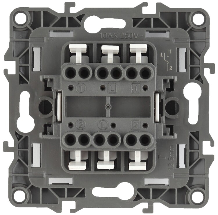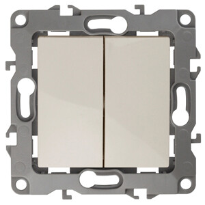 Выключатель 2-клавишный проходной серии Эра 12 скрытой установки механизм цвет слоновая кость 12-1106-02. Номинальные характеристики 10А 250В . Сделан из поликарбоната, оснащёно автоматическими клеммами для быстрй и надёжной фиксации жил кабеля в механиме. Парные клеммы обеспечивают соединение шлейфом. Монтаж в подрозетник производится и на лапки, и на винты. Рамки приобретаются отдельно. Рамки Эра 12: 1 пост 12-5001-хх, 2 поста 12-5002-хх, 3 поста 12-5003-хх, 4 поста 12-5004-хх, 5 постов 12-5005-хх. Рамки Эра 12 Сатин: 1 пост 12-5101-хх, 2 поста 12-5102-хх, 3 поста 12-5103-хх, 4 поста 12-5104-хх, 5 постов - 12-5105-хх (хх - код цвета: 01-белый, 02-слоновая кость, 03-алюминий, 04-шампань, 05-антрацит, 06-чёрный, 07-ольха(белёный дуб-сатин), 08-вишня, 09-дуб, 10-венге, 11-сосна, 21-жёлтый, 22-оранжевый, 23-красный, 24-охра, 25-бордо, 26-лайм, 27-зелёный, 28-голубой, 29-синий).
