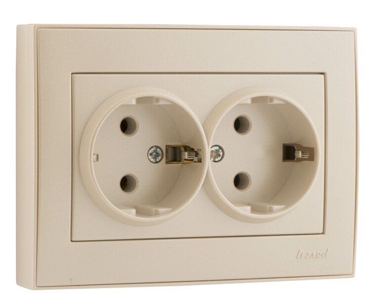 Lezard RAIN Розетка двойная с/з керамика жемчужно-белый перламутр 1/10/120