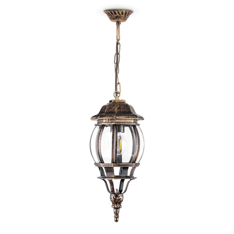 Светильник садово-парковый, серии «Классика», (НСУ) FERON 8105/PL8105 100W, E27, 230V, IP44, цвет черное золото, 8-и гранник, на цепочке, 160*160*840мм