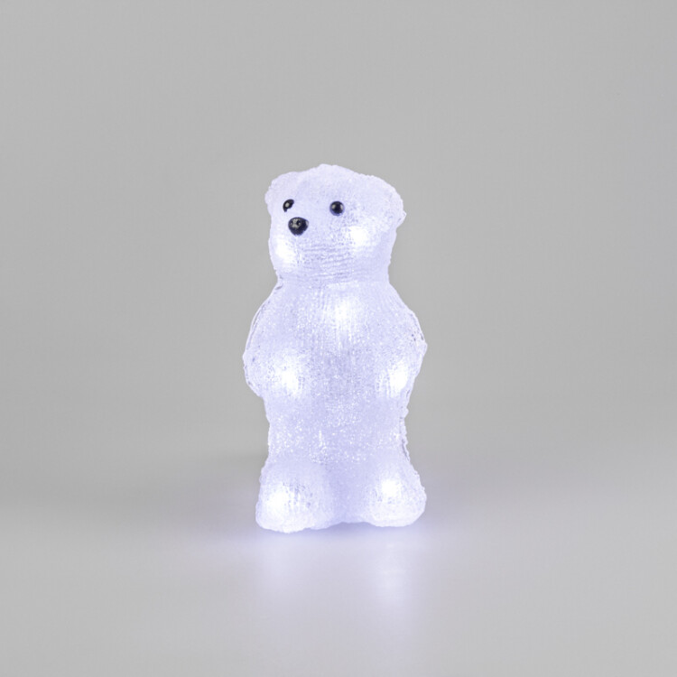 Акриловая светодиодная фигура «Медвежон ок» высотой 22 см — интересное решение для оформления интерьера, которое станет ярким акцентом, выгодно подчеркнет особенности дизайна и подарит ощущение уюта. 10 ярких светодиодов излучают белый свет нейтрального оттенка, мягко обрамляя контуры и создавая эффект объема. Корпус выполнен из прочного акрила, особая технология обработки поверхности обеспечивает приятную фактуру, визуально имитирующую плюшевую шерсть животного. Фигура работает от 3 батареек типа АА и полностью безопасна в использовании.
