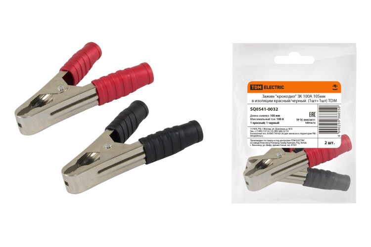 TDM Зажим "крокодил" ЗК 100А 105мм в изоляции красный/черный (1шт+1шт)