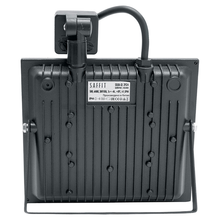 Прожектор светодиодный многоматричный с монтажным креплением на кронштейн, с инфракрасным датчиком движения (ДО) SAFFIT SFL80-30, 30W, 6400К (дневной), 230V/50Гц, 2700Lm, IP44, угол рассеивания 120°,*SMD2835, раб.t -40°C - +45°C, цвет черный, корпус алюминий литой под давлением + стекло, 110*160*50 мм