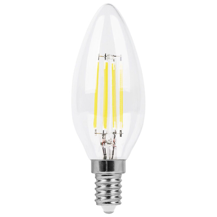 Лампа светодиодная филамент FERON LB-713, C35 (свеча), 11W 230V E14 6400К (дневной), рассеиватель прозрачный 990Lm, угол рассеивания 270°, 100*35мм
