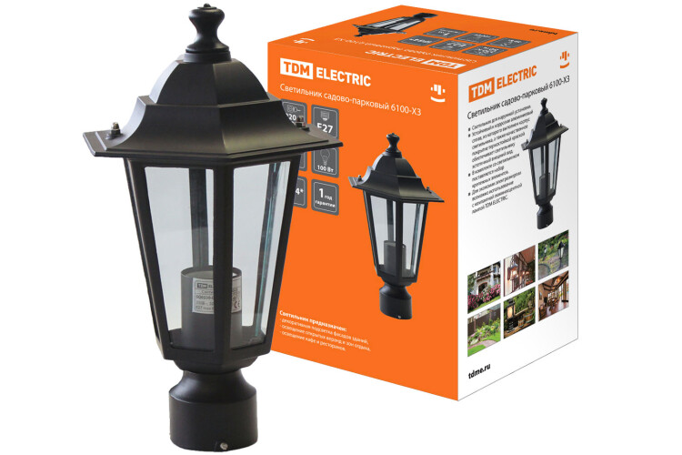 TDM Светильник 6100-03 садово-парковый шестигранник, 100Вт, на опору, черный