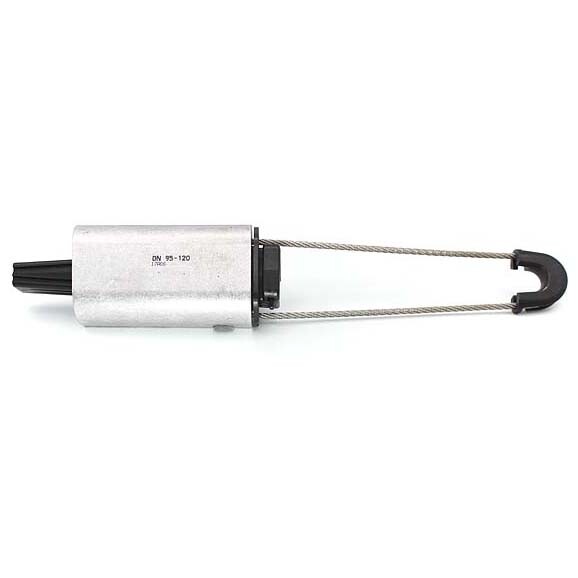 Предназначен для крепления изолированной нулевой несущей жилы (СИП-2) с сечением 95-120 мм2 на анкерных и анкерно-угловых опорах. Зажим обеспечивает надежную фиксацию и удержание проводов путём натяжения при монтаже воздушных линий электропередач. Крепится на опорах с помощью крюков и кронштейнов. Установка зажима производится благодаря наличию тросика. Корпус выполнен из алюминиевого сплава методом экструзии, что обеспечивает высокую надежность зажима и его устойчивость к механическим воздействиям. Саморегулирующиеся клинья из полимера, устойчивого к ультрафиолетовому излучению, выполнены с особым рельефом, надежно фиксирующим проводник, не повреждая изоляцию. В месте установки зажима защитная изоляция с жилы не снимается, тем самым, герметичность провода не нарушается. Тросик из нержавеющей стали, с шаровыми креплениями на обоих концах для удобства монтажа и надежной фиксации, имеет специальную накладку (коуш), защищающую его от износа при креплении на кронштейне (крюке). Установка зажима производится без инструментов. Обладает высокой прочностью, устойчивостью к ультрафиолету, коррозии, воздействию экстремальных температур, влажности и другим погодно-климатическим факторам.