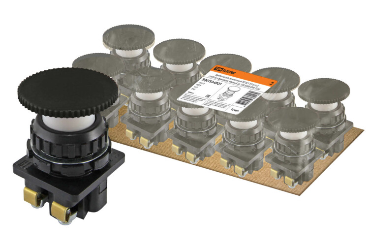 TDM Выключатель кнопочный КЕ 021-У2-исп.3 гриб без фиксации черный 2р 10A 660B IP40.