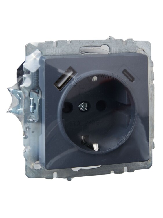IEK BRITE BASE Маренго Розетка с з/к/ш 16А с USB A+C 18Вт РЮш11-1-БрМ