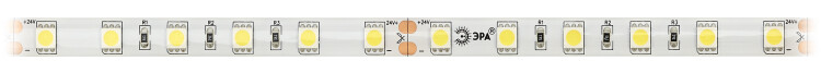 ЭРА Лента светодиодная LS5050-14,4-60-24-65-4000К-5m (50/800) со степенью защиты от пыли и влаги IP65 - современный способ создания внутреннего освещения, подсветки ниш, лестничного пространства, систем хранения, а также декоративного и художественного оформления любых объектов и форм в помещениях с повышенным уровнем влажности и уличного освещения. Легко и быстро устанавливается на любой гладкой поверхности с помощью скотча, расположенного на оборотной стороне ленты Используя алюминиевый профиль, можно создавать необычные и функциональные решения освещения в Вашем интерьере. Рабочее напряжение ленты составляет 24В, а мощность равна 14,4 Вт/м. Светодиодная лента обладает световым потоком 1000 Лм/м, и цветом свечения - дневной белый (4000 К)