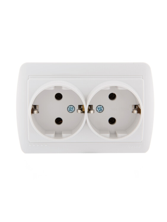 Lezard DEMET Розетка двойная с/з закрытый корпус белый 10/120