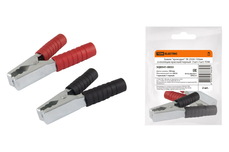 TDM Зажим "крокодил" ЗК 250А 150мм в изоляции красный/черный (1шт+1шт)