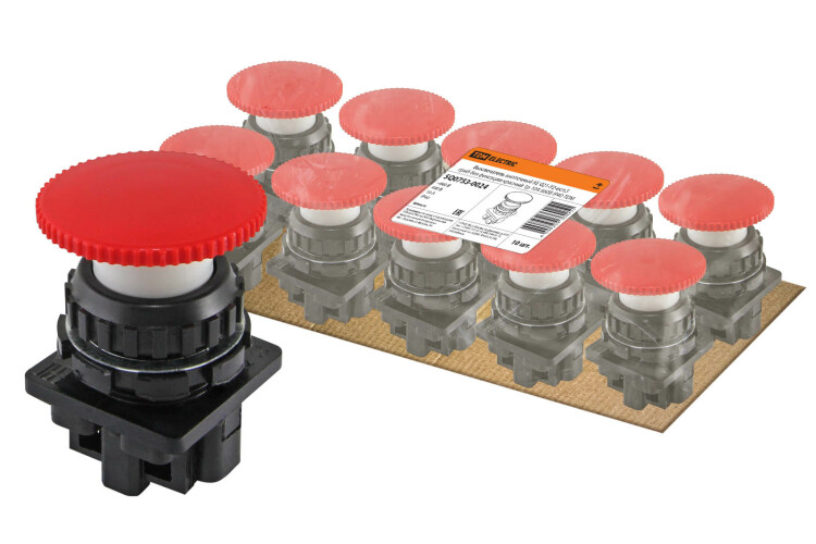 TDM Выключатель кнопочный КЕ 021-У2-исп.5 гриб без фиксации красный 1р 10A 660B IP40.