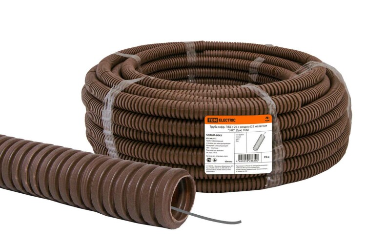 TDM Труба гофрированная ПВХ d 25 с зондом (25 м) легкая "ЭКО" (бук)