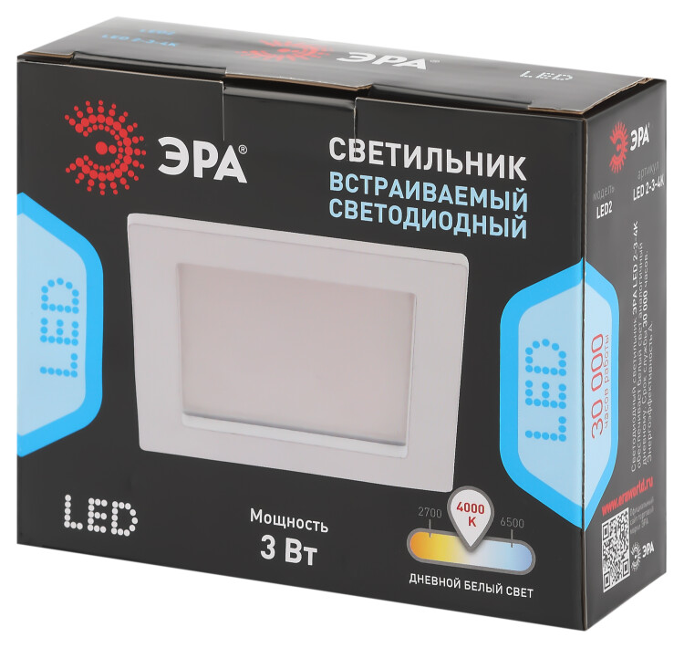 Квадратный светодиодный светильник LED 2-3-4K - замечательное решение для любой комнаты в вашем доме. Светодиодный светильник можно использовать как в качестве основного освещения, так и для создания акцентов в определенных зонах комнаты. Благодаря скрытой части корпуса светильники можно встраивать в потолок или стены, создавая разный стиль помещений. Светильник ЭРА с приятным дизайном подойдет для помещений с разным интерьером: от минимализма до хай-тека, прованса или скандинавского стиля. Цветовая температура составляет 4000К, она оптимальна для глаз и не заставляет их испытывать дискомфорт. Максимальная мощность лампы – 3 Вт. Корпус встраиваемого светильника изготовлен из ударопрочного алюминия, что делает его особенно удобным в использовании, а благодаря матовому стеклу, защищающему лампу, свет рассеивается и становится мягким. Диаметр отверстия, требуемого для установки светильника составляет 70 мм, а размер самого светильника – 85х85 мм. Купив точечный светильник бренда ЭРА, вы останетесь довольны и сможете создать приятную атмосферу в доме.