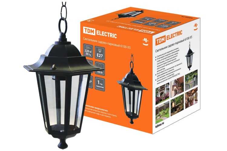 TDM Светильник 6100-05 садово-парковый шестигранник, 100Вт, подвес, черный