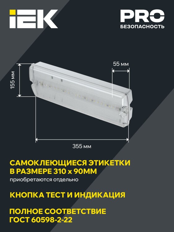 Применяются для освещения путей эвакуации, коридоров, проходов, запасных дверей. Оснащен кнопкой «Тест» для индивидуального тестирования работоспособности светильника. Имеет универсальное подключение (постоянного и непостоянного действия - зависит от схемы). Дальность распознавания 18 м, потребляемая мощность при заряде - 3,5 Вт.