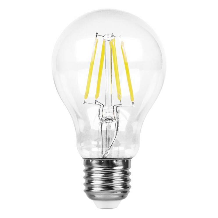 Лампа светодиодная филамент FERON LB-57, A60 (шар), 7W 230V E27 4000К (белый), рассеиватель прозрачный 760Lm, угол рассеивания 270°, 107*60мм