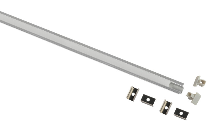 Комплект врезного алюминиевого профиля предназначен для установки светодиодных лент с шириной подложки до 5мм. За счёт отведения тепла увеличивает срок службы светодиодной ленты. Анодированное покрытие обеспечивает устойчивость к воздействиям окружающей среды и легко окрашивается. Эстетично смотрится в интерьере, обеспечивает механическую защиту. В комплекте врезной алюминиевый профиль 1209 12,4х 9мм 2 м, белый матовый экран из поликарбоната 2 м, 4 крепления и 2 заглушки.