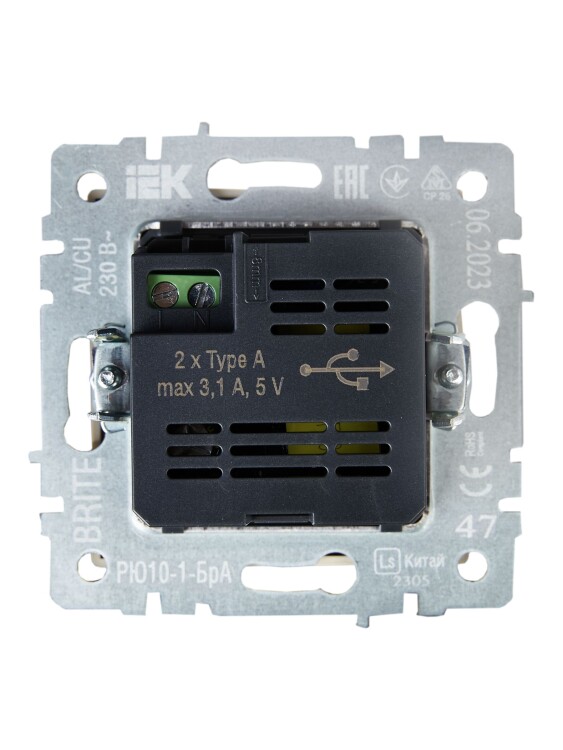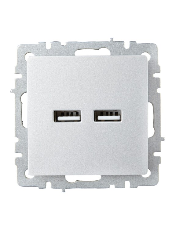 IEK BRITE BASE Алюминий Розетка USB A+A 3,1А РЮ10-1-БрА