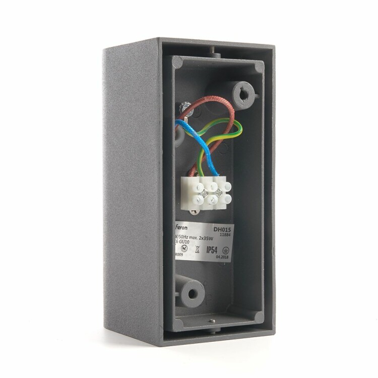 Светильник садово-парковый, серии «Бостон», (ДБУ) FERON DH015 35W, GU10, 230V, IP65, цвет серый, на стену , 68*78*160мм