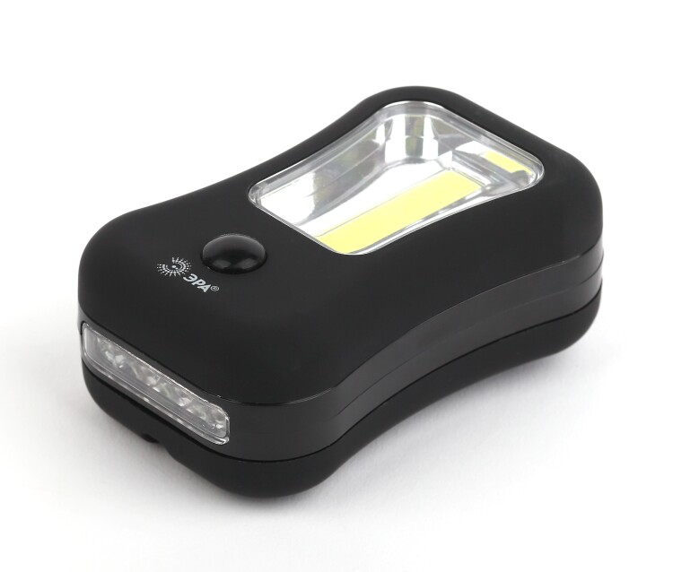 ЭРА RB-601 Практик светодиодный фонарь-светильник с двумя режимами работы. Используется как фонарь с регулируемым фокусом и как светильник с магнитом и удобным крючком для подвешивания. Создает два варианта света длинный направленный луч 20 метров и широкое ближнее освещение. Уровень яркости можно изменять 100 и 50%. Луч формируют 4 белых светодиода во фронтальной части, а за светильник отвечает удлиненная светодиодная плата. Технология COB (мультикристалл на плате) это адаптированный для универсальных целей мощный промышленный свет. Фонарь ЭРА RB-601 светит гарантированно ярко. Корпус прорезинен и покрыт мягким приятным на ощупь материалом софт-тач. Для работы необходимы 3 мизинчиковые батарейки, их хватает на 5 часов непрерывного свечения.