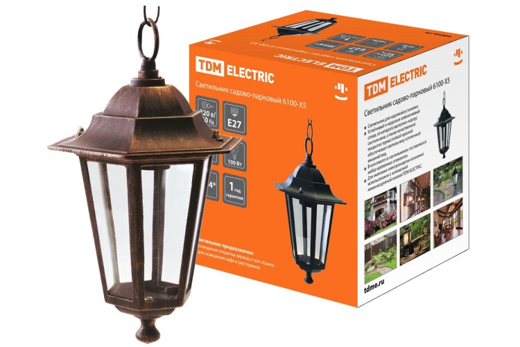 TDM Светильник 6100-15 садово-парковый шестигранник, 100Вт, подвес, бронза