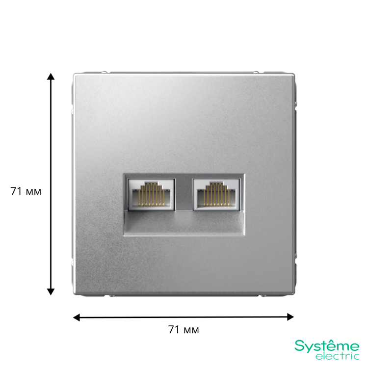 Механизм Systeme Electric серии ArtGallery в цвете алюминий двойной розетки компьютерной с разъёмом RJ45 категория 6А предназначен для удобного и быстрого подключения вашего компьютера к локальной вычислительной сети.