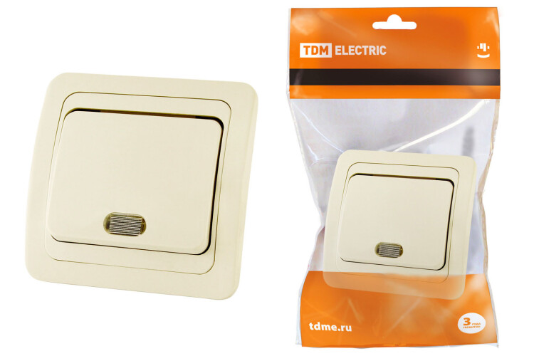 TDM Выключатель 1-кл. с подсветкой 10А сл. кость "Валдай"