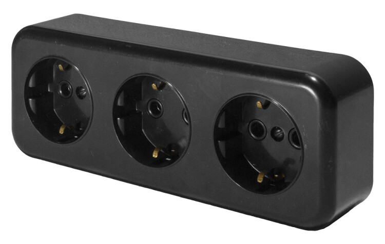 Розетка STEKKER PST16-51-20 на 3 гнездо, с заземлением. Материал: ABS пластик, цвет черный, размер 160*60*44,5мм. Номинальное напряжение 250, номинальный ток 16А, диапазон рабочих температур 0..+35°C, IP20