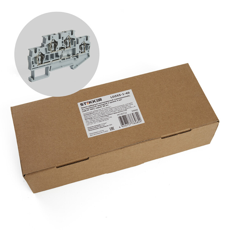 LD555-1-40 ЗНИ Зажим самозажимной, 4-проводной проходной 2 уровня 4.0 мм? (JXB ST 4), серый