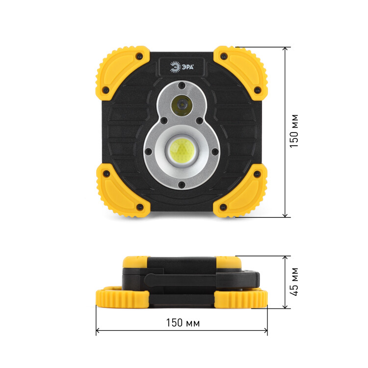 Фонарь прожектор мощностью 10 Вт от бренда ЭРА идеальный выбор для тех, кому нужно всё и сразу.Светодиодный фонарь имеет размеры 15,5х15,5. Это экономит пространство и без труда позволяет брать фонарик в путешествие или на работу.Надежность походного светильника обусловлена корпусом из ударопрочного пластика с прорезиненными вставками по бокам. Дальность луча в 210 м подарит Вам качественное яркое освещение. Направленный свет достигается за счет COB светодиода, а заливной широкий с помощью LED платы. 2 режима работы позволят настраивать свечение на свой вкус. Главное преимущество фонарика 25 часов непрерывной работы. Более того, модель имеет USB гнезда для подзарядки не только самого устройства, но и мобильных телефонов.Аккумуляторный фонарь имеет подвижную ручку. Это позволяет носить устройство с собой либо использовать в качестве подвесного светильника.Светодиодный фонарь от компании ЭРА это удобство и качество по оптимальной цене.