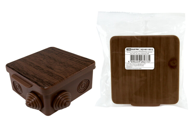TDM Распаячная коробка ОП 80х80х50мм, крышка, "ЭКО" (венге), IP54, 7вх. инд. штрихкод