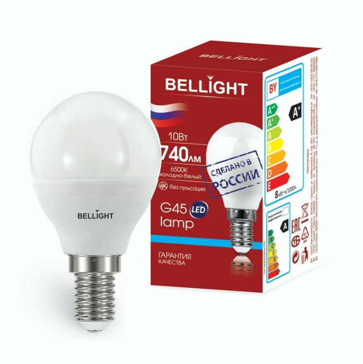 BELLIGHT Лампа светодиодная LED G45 10W E14 6500К РФ 1/100