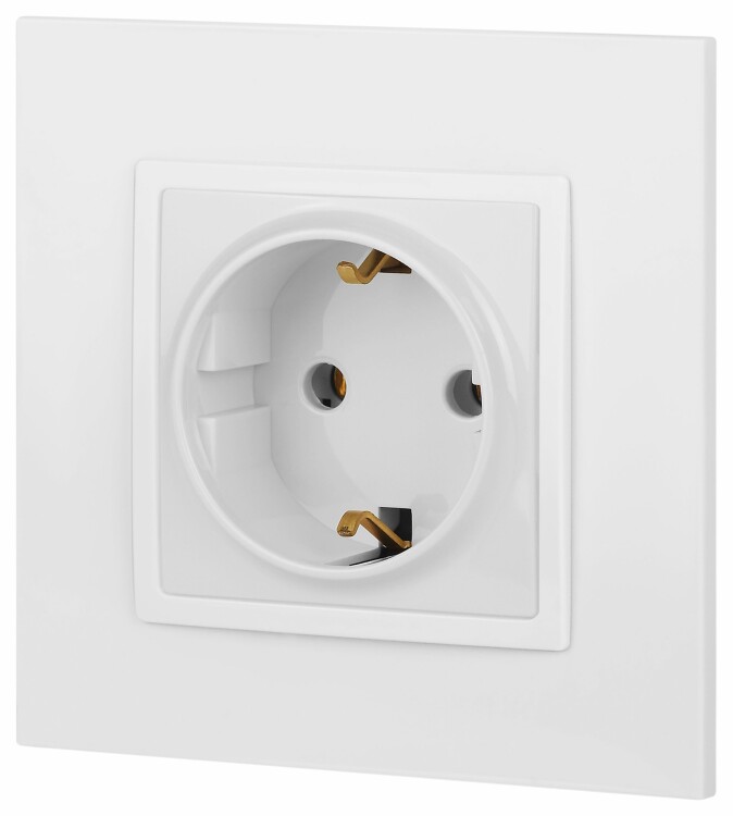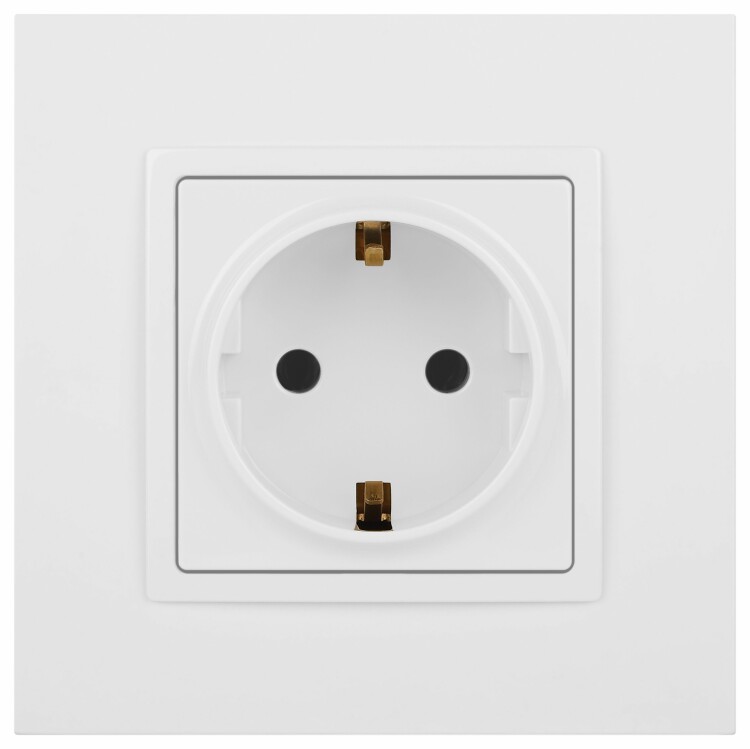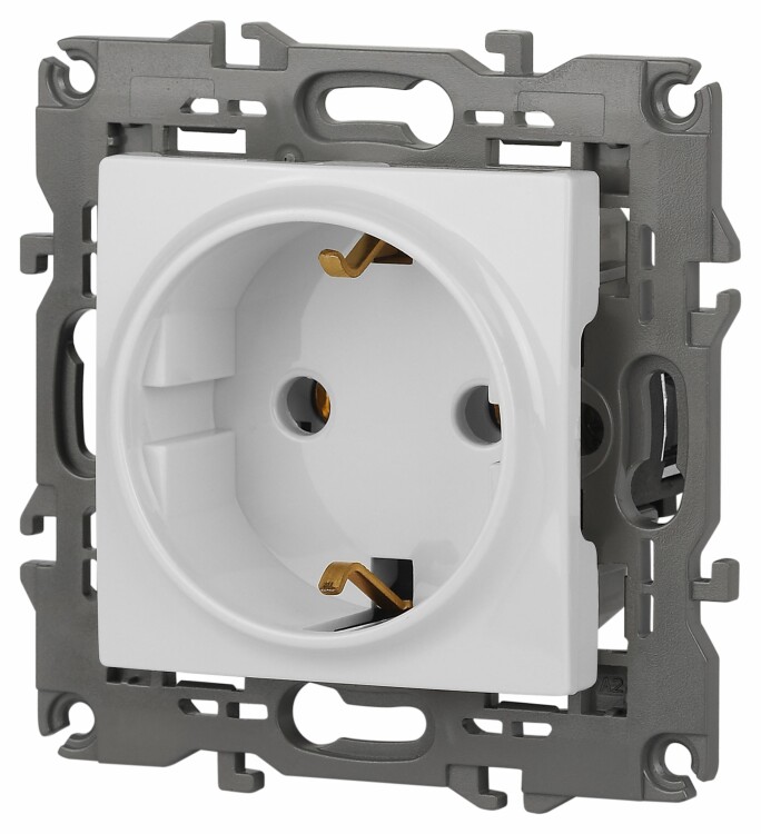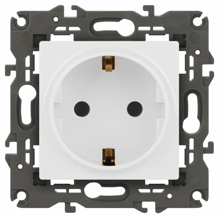 Розетка с заземлением Эра Elegance белый 14-2101-01. Оснащёна автоматическими клеммами для надёжной фиксации жил кабеля в механизме. Рамки приобретаются отдельно. Рамки Эра Elegance ПЛАСТИК: 1 пост 14-5001-хх, 2 поста 14-5002-хх, 3 поста 14-5003-хх, 4 поста 14-5004-хх, 5 постов 14-5005-хх; СТЕКЛО: 1 пост 14-5101-хх, 2 поста 14-5102-хх, 3 поста 14-5103-хх, 4 поста 14-5104-хх; МЕТАЛЛ: 1 пост 14-5201-хх, 2 поста 14-5202-хх, 3 поста 14-5203-хх, 4 поста 14-5204-хх; ДЕРЕВО: 1 пост 14-5301-хх, 2 поста 14-5302-хх, 3 поста 14-5303-хх, 4 поста 14-5304-хх (хх - код цвета: 00-прозрачный, 01-белый, белёный дуб, 02-слоновая кость, 03-алюминий, 04-шампань, 05-чёрный, чёрное дерево, 07-ясень, 09-дуб, 10-венге, 11-клён, 14-медь, 21-жёлтый, 22-оранжевый, 23-красный, 25-бордо, 26-лайм, 27-зелёный, 28-голубой, 29-синий, 30-розовый, 31-мокко, 32-серый, 41-сталь, 42-титан).