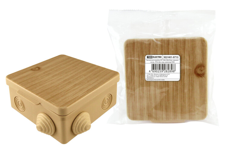 TDM Распаячная коробка ОП 100х100х55мм, крышка, "ЭКО" (сосна), IP54, 8вх. инд. штрихкод