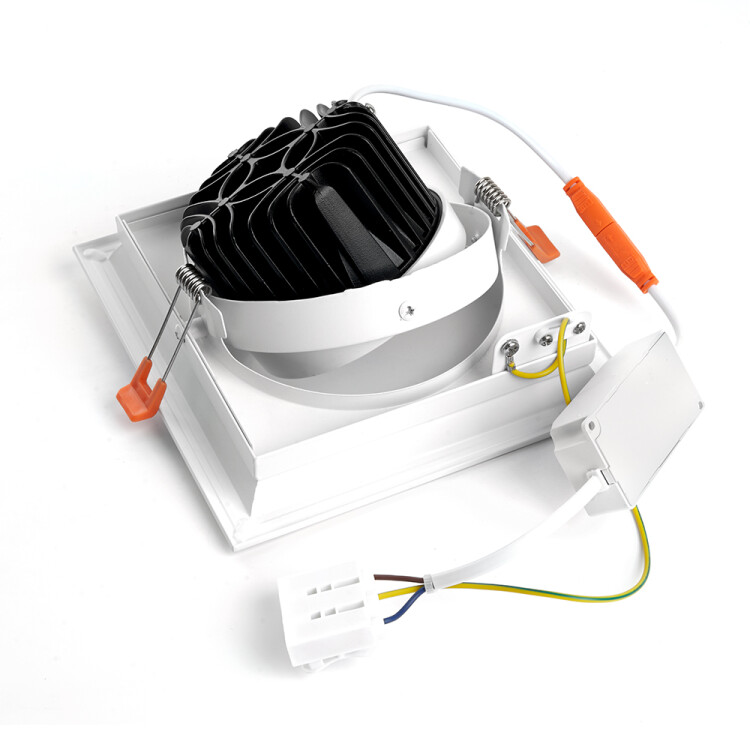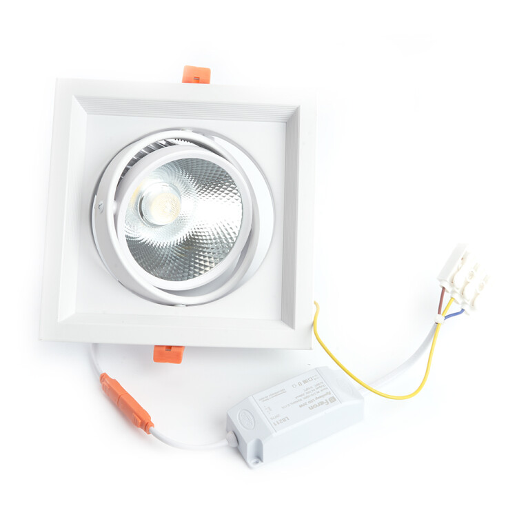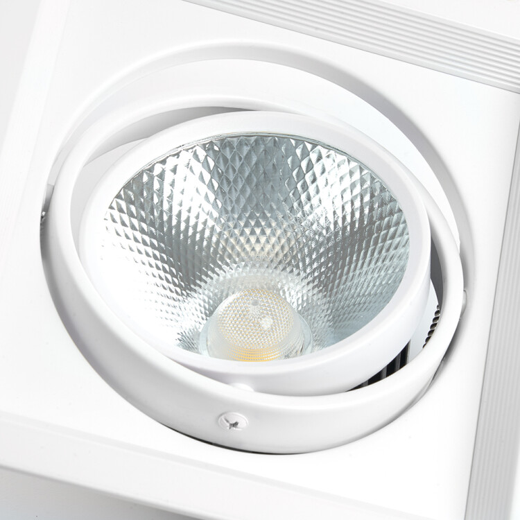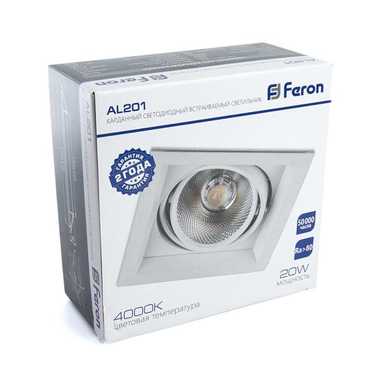 Светильник карданный встраиваемый светодиодный , карданный (ДВО) FERON AL201, 20W 4000К (белый), 170-265V, 1800Lm, IP20, угол рассеивания 35°, цвет белый, корпус алюминий, рассеиватель стекло, 175*175*80 мм, монтажн.отв. 155*155 мм.
