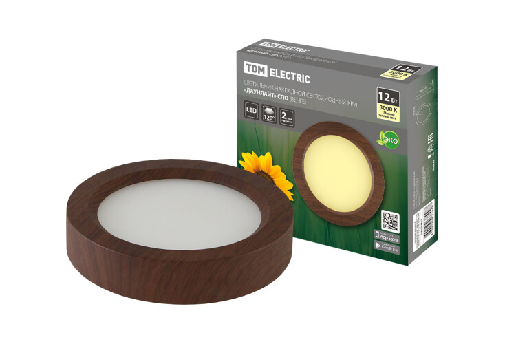 TDM Светильник накладной светодиодный круг "Даунлайт" СПО (венге) 12 Вт 170*32 мм 3000К.